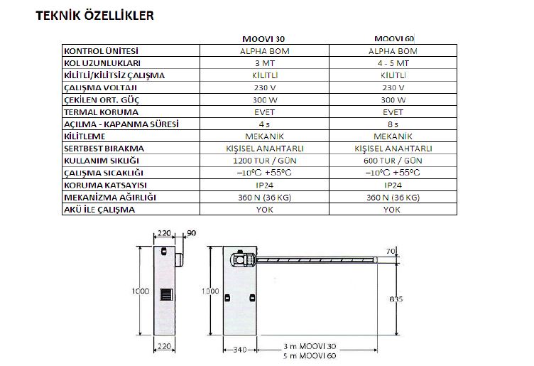 2,5 - 4 sn. arası açılma süresi , 4 ile 6 mt. arası kol uzunlukları